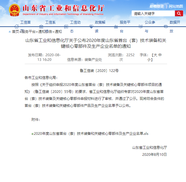 2020年度山東省首臺(tái)(套)2020年技術(shù)裝備和關(guān)鍵核心零部件及生產(chǎn)企業(yè)名單