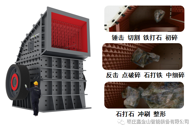 新型單段重錘反擊破是棗莊鑫金山智能裝備有限公司經(jīng)多年生產(chǎn)實踐自主研發(fā)的一款新型高效節(jié)能破碎機,從2006年推出至今,憑借能耗低、產(chǎn)量高、粒型優(yōu)、耗損少的顯著特點,快速在水泥企中得到推廣應用,目前,已有超過100個客戶使用案例。