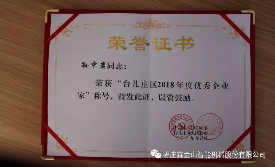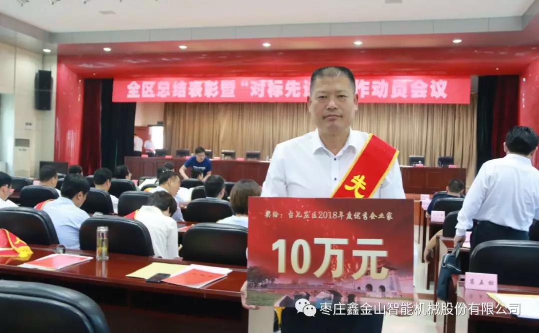5月31日上午,臺兒莊區(qū)總結(jié)表彰暨“對標先進”工作動員會議隆重召開,全區(qū)各單位、各部門、各企業(yè)的代表共計300余人參加會議。棗莊鑫金山智能機械股份有限公司董事長孫中巖作為重點骨干企業(yè)的代表出席會議并獲“優(yōu)秀企業(yè)家”殊榮及獎勵。