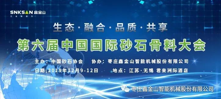 導讀:為加強各國砂石骨料行業(yè)的交流與合作,推動砂石骨料工業(yè)的轉(zhuǎn)型升級、綠色發(fā)展和高質(zhì)量發(fā)展,打造全球砂石骨料工業(yè)的命運共同體。由中國砂石協(xié)會主辦的第六屆中國國際砂石骨料大會將于12月9日-12日在江蘇無錫召開。棗莊鑫金山智能機械股份有限公司作為協(xié)辦單位,誠邀您蒞臨。