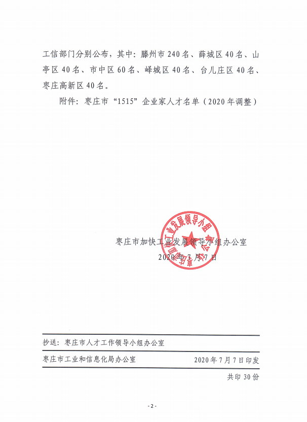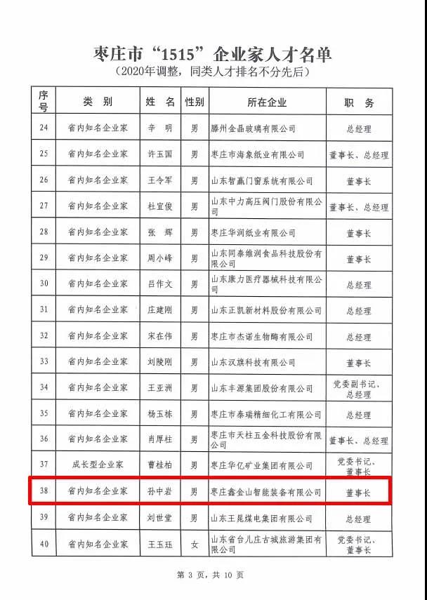 棗莊市“1515”企業(yè)家人才名單