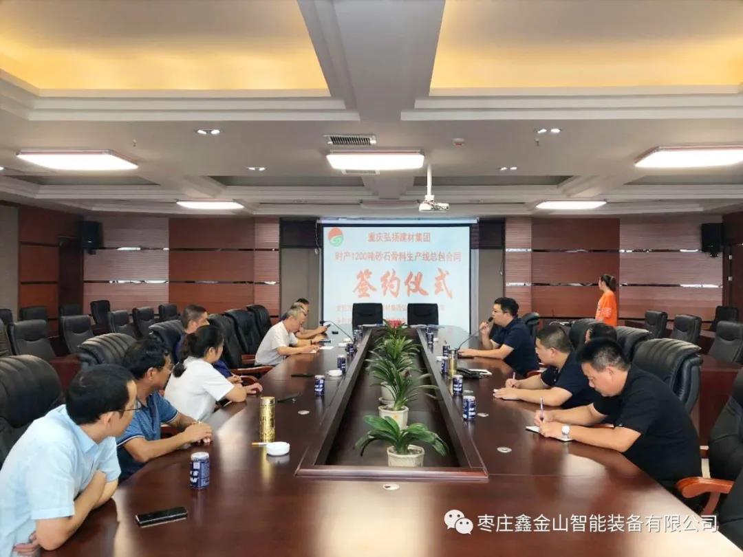 導(dǎo)讀:8月8日9點(diǎn)18分,棗莊鑫金山智能裝備有限公司與重慶弘揚(yáng)建材集團(tuán)在重慶黔江區(qū)弘揚(yáng)集團(tuán)總部會(huì)議室正式舉行了簽約儀式,成功簽訂EPCO項(xiàng)目合作協(xié)議,開啟了雙方長(zhǎng)期戰(zhàn)略合作。
