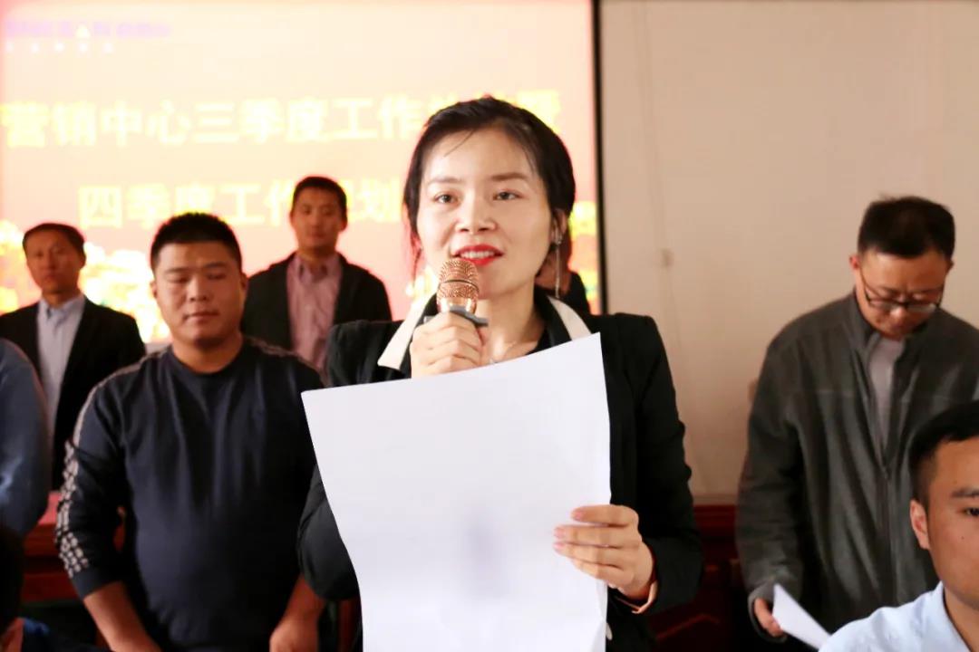 營(yíng)銷總監(jiān)胡振霖通過精準(zhǔn)的數(shù)據(jù)分析對(duì)第三季度的工作做了全面的總結(jié),表彰了工作突出的同事,也深刻分析了存在的問題。并對(duì)四季度的工作目標(biāo)做了詳細(xì)說明和部署,也對(duì)營(yíng)銷戰(zhàn)士們的工作提出了更高的要求。同時(shí)用自己的親身經(jīng)歷激勵(lì)大家再鼓干勁,為了目標(biāo)而努力。zui后,胡總要求大家團(tuán)結(jié)一心,深挖潛力,勢(shì)必完成今年的銷售指標(biāo)。