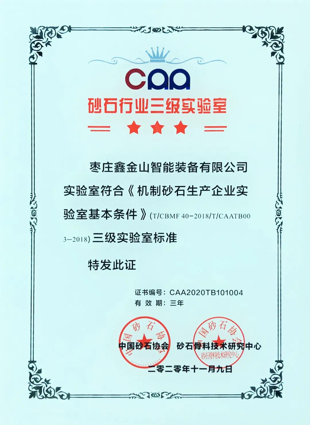 “三級實(shí)驗(yàn)室”只是棗莊鑫金山智能裝備有限公司試驗(yàn)中心新的工作起點(diǎn),未來,公司將進(jìn)一步提高高等級實(shí)驗(yàn)室檢測與研發(fā)水平,不斷提升產(chǎn)品質(zhì)量,使實(shí)驗(yàn)室的各項(xiàng)工作更上一個(gè)新的臺(tái)階,更好的為砂石企業(yè)提供技術(shù)服務(wù),為砂石行業(yè)的高質(zhì)量發(fā)展和健康有序發(fā)展貢獻(xiàn)力量!