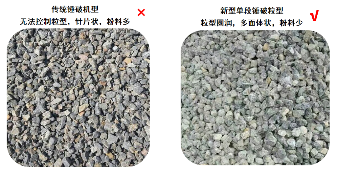 成品優(yōu):成品粒型好,多邊型多,針片狀少,石粉量低至15%。