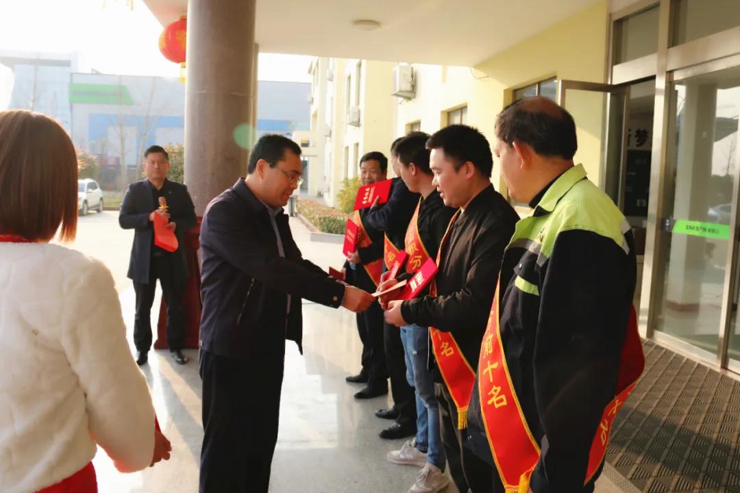 總經(jīng)理裴尚分別為獲獎人員頒發(fā)了榮譽證書及獎勵。大家興高采烈的從裴總手中接過沉甸甸的榮譽與紅包。獲得這項榮譽與他們日常努力工作密不可分。
