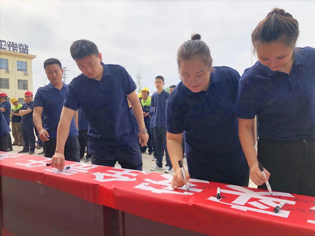 最后,公司領(lǐng)導(dǎo)班子成員、全體員工依次在印有安全生產(chǎn)月主題“落實安全責(zé)任,推動安全發(fā)展”的宣傳條幅上進(jìn)行了簽名,為公司全年扎實開展安全生產(chǎn)月活動拉開了序幕。
