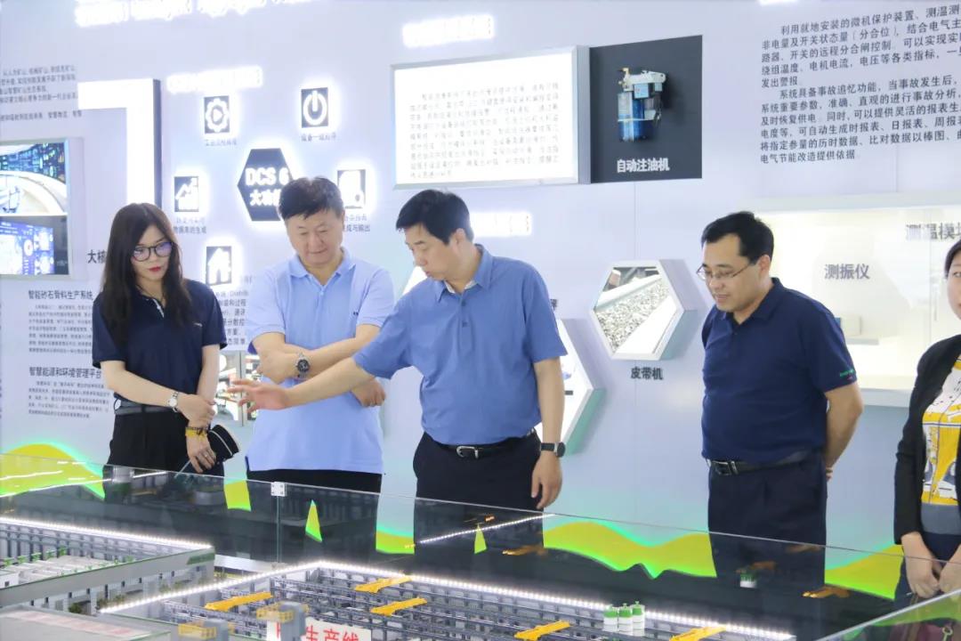 孔會(huì)長(zhǎng)一行在裴尚總經(jīng)理的陪同下,首先來到鑫金山智慧礦山科技研發(fā)中心,觀看公司宣傳片,參觀了公司的展示廳,聽取了公司發(fā)展歷程、資質(zhì)榮譽(yù)以及科技創(chuàng)新成果等方面的情況??讜?huì)長(zhǎng)對(duì)公司產(chǎn)品研發(fā)、智能制造、轉(zhuǎn)型升級(jí)等各項(xiàng)工作的高效開展給予了表?yè)P(yáng),并肯定了鑫金山在促進(jìn)砂石行業(yè)高質(zhì)量發(fā)展和綠色礦山建設(shè)工作中所做出的努力。