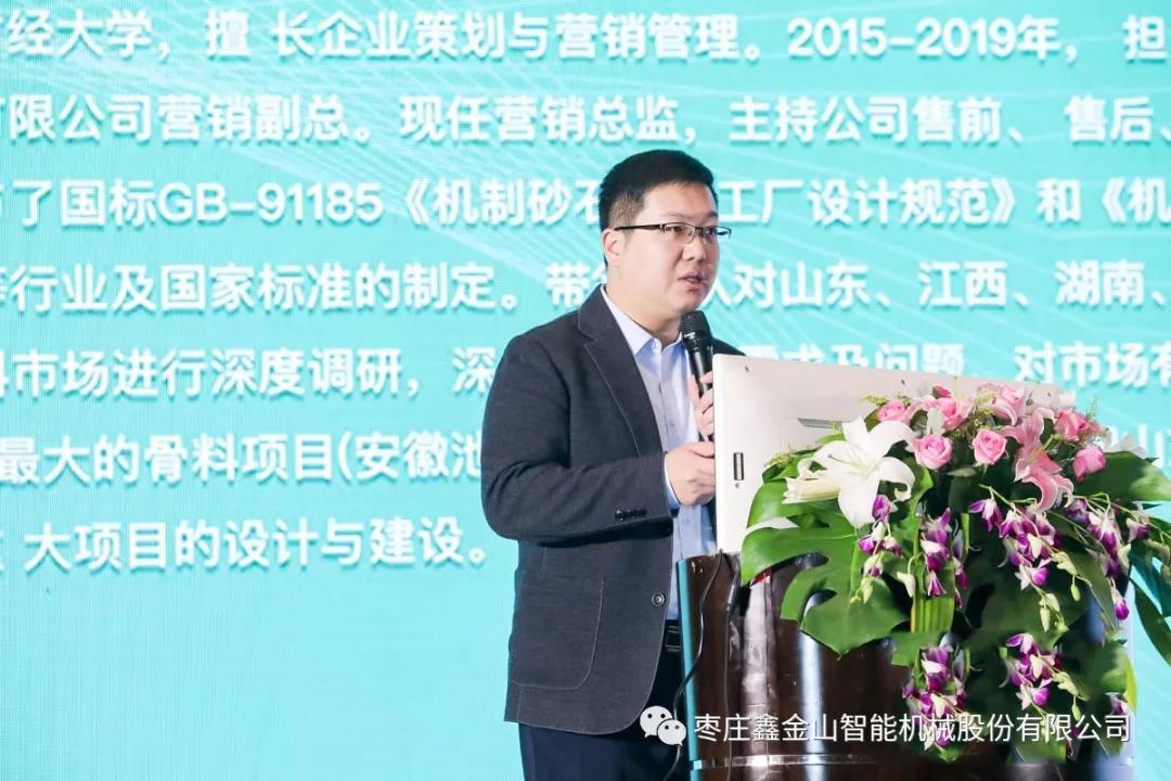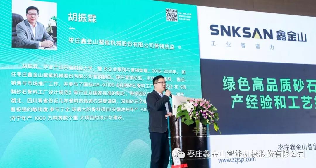 鑫金山運營總監(jiān)胡總在大會上作《如何根據(jù)guojia要求打造符合標準的綠色砂石礦山》的主題報告,介紹了鑫金山智能機械的基本情況及高效能短流程綠色骨料線的核心優(yōu)勢,并對綠色礦山建設(shè)提出了看法,胡總表示,綠色礦山需要具備生態(tài)環(huán)保、開采科學、利用高效、管理規(guī)范和礦地和諧等特點。同時,從設(shè)備配置、工藝設(shè)計、建設(shè)方式、現(xiàn)代化運營等方面著重對鑫金山年產(chǎn)1500萬噸精品砂石骨料線進行了詳細講解。