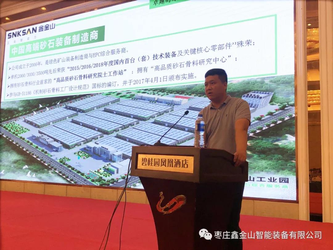 大會(huì)上,鑫金山華北區(qū)域總監(jiān)童德成作了題為《綠色智能精品砂石骨料生產(chǎn)線(xiàn)建設(shè)方案》的專(zhuān)題報(bào)告演講。他首先對(duì)公司產(chǎn)品、技術(shù)與核心優(yōu)勢(shì)進(jìn)行了介紹,隨后重點(diǎn)分享了年產(chǎn)1500萬(wàn)噸砂石骨料生產(chǎn)線(xiàn)建設(shè)方案和精品制砂系統(tǒng),并以數(shù)十個(gè)EPCO項(xiàng)目為案例,給大家展示了鑫金山設(shè)備和技術(shù)在礦山破碎領(lǐng)域的成功應(yīng)用。