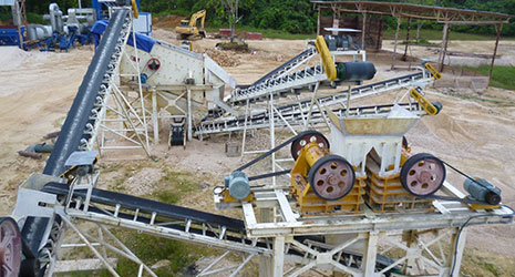 3.二次破碎階段。從初破顎式破碎機(jī)出來(lái)的碎料由皮帶機(jī)輸送到一組雙顎式破碎機(jī)進(jìn)行二級(jí)破碎。通過(guò)對(duì)雙顎式破碎機(jī)的破碎,物料幾乎都是合格產(chǎn)品。
