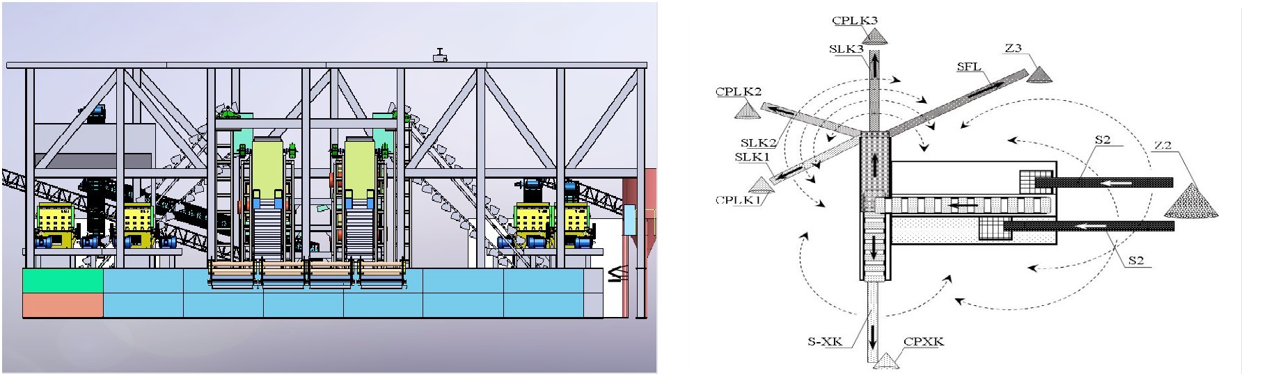 系統(tǒng)集成化的設計,縮短工藝流程,減少了工序和設備, ≤1200mm的原料直接通過2段工藝可得到50%高品質砂, 通過3段工藝就可100%純制砂。